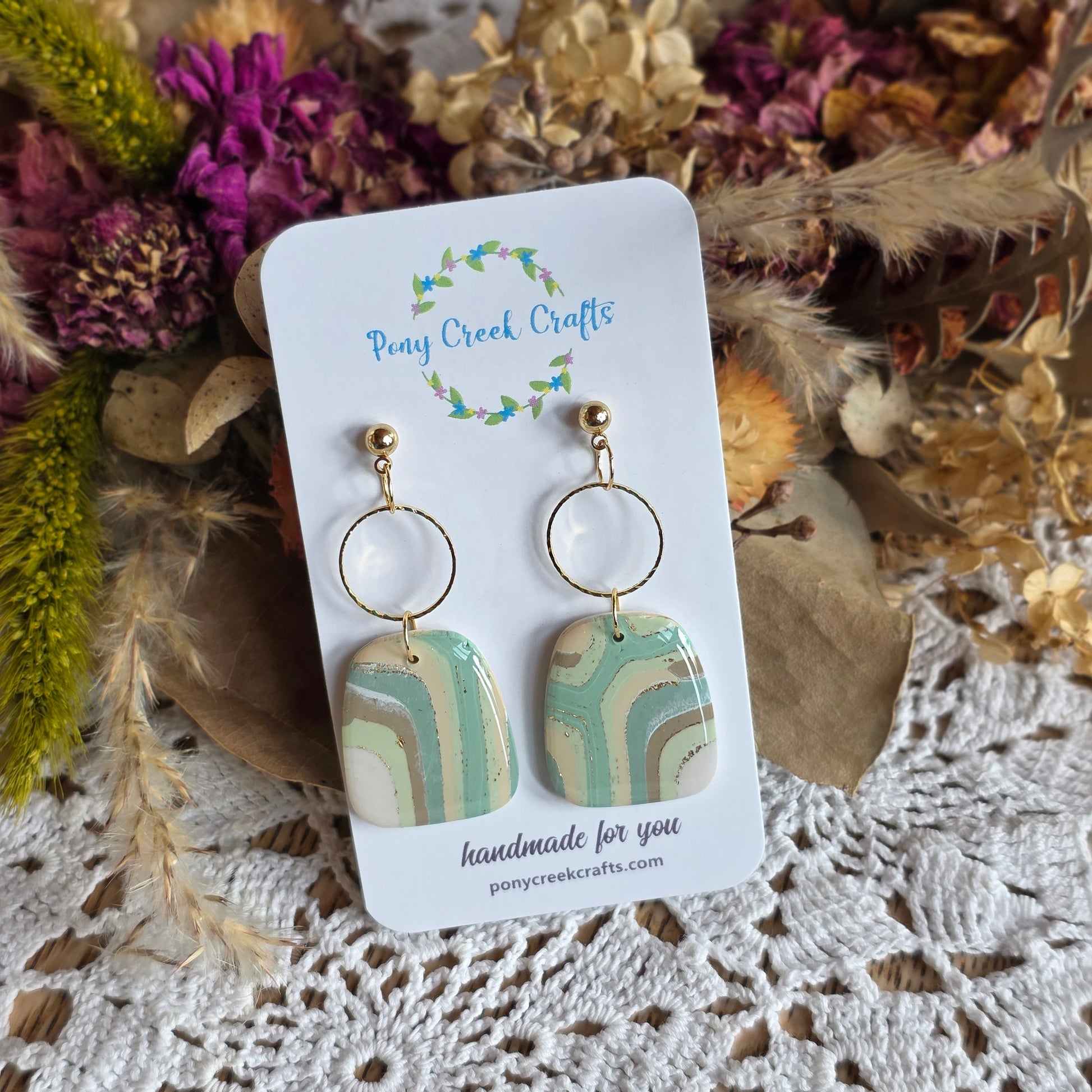These earrings feature beautiful faux agate polymer clay in soothing earth tones, complemented by a resin accent that adds subtle depth. The gold-plated stainless steel posts ensure both durability and a touch of elegance, making them perfect for everyday wear or special occasions. Elevate your look with this unique, handcrafted accessory designed to blend natural-inspired beauty with lasting comfort.